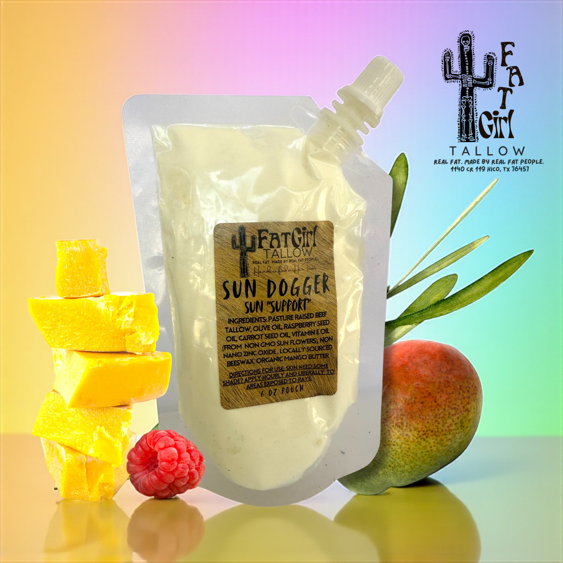 New; by popular demand… and because of a few three lettered agencies- I’m going to need you to read through the lines with me on this one 😉 I recently had a friend ask me how the weather in TX was during the summer. To which I replied… “ummm have you ever been cremated?” 💚 Ashes to ashes-dust to dust gorgeous; we will not let you fry your skin this summer! Fat Girl has got your non toxic, natural, “SUN SUPPORT” with Sun Dogger. Our unique blend of locally sourced, grassfed beef tallow, essential oils, and natural-non nano zinc oxide is a great “skin shade tree” alternative that happens to be ultra moisturizing, water resistant, and smells like fresh brewed tea (the scent is from the carrot seed oil). We recommend reapplying every hour to areas soaking up those rays, especially if you’re submerging in water. So yeah, we’re “throwin’ shade… naturally!”