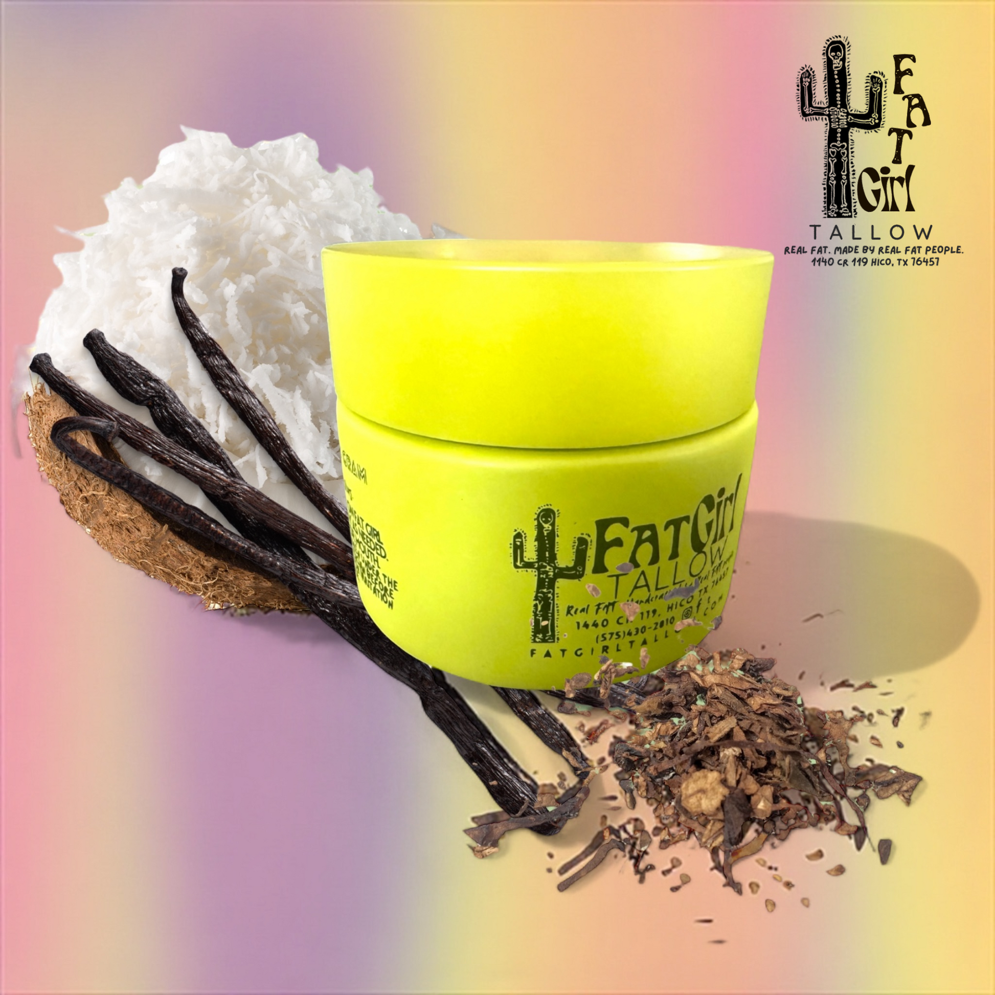 Like our other whipped balms, indgredients include ONLY: Locally sourced, grass fed beef tallow, organic arrowroot powder, organic olive oil, pure essential oil. (Doesn’t it feel good to be able to identify and pronounce all those ingredients… we think so too 😊)
